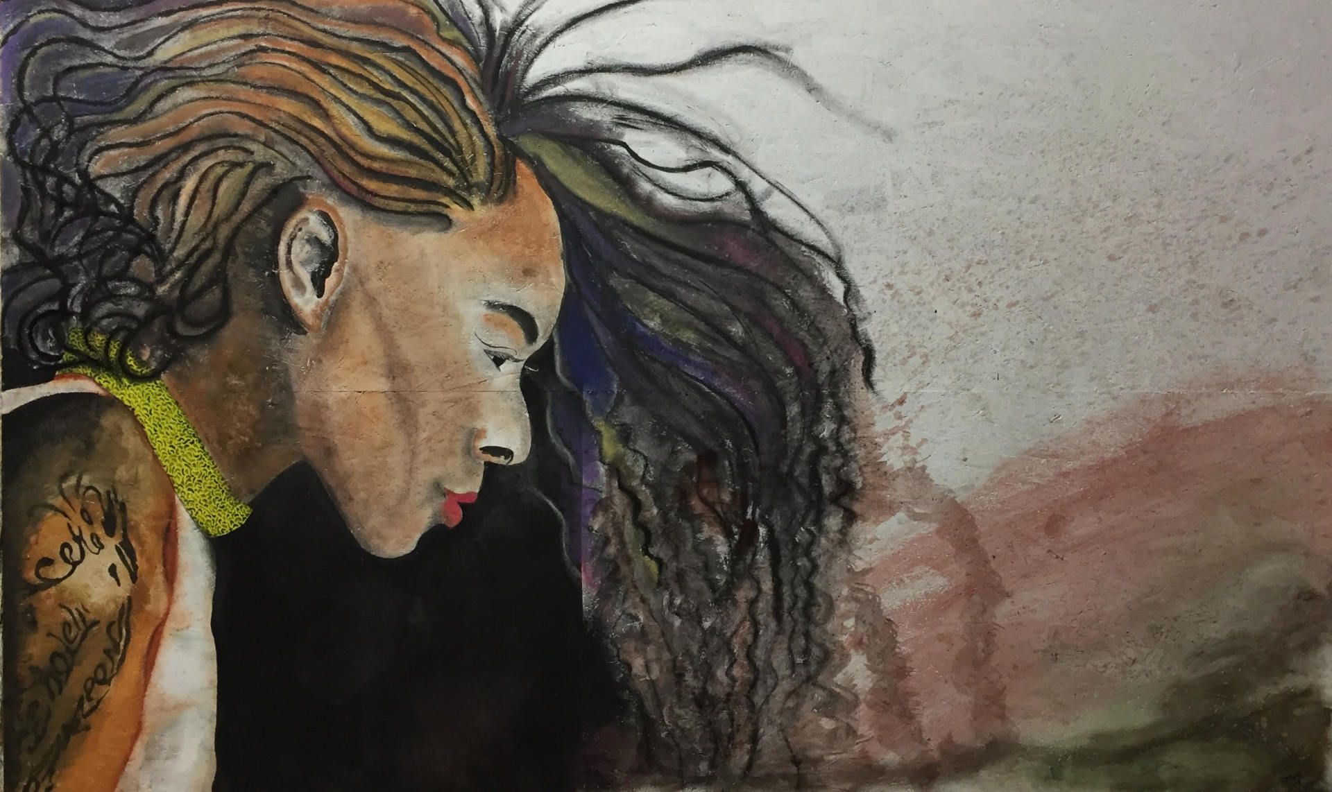 ButtonOil, acrylic, pastel crayon on canvas