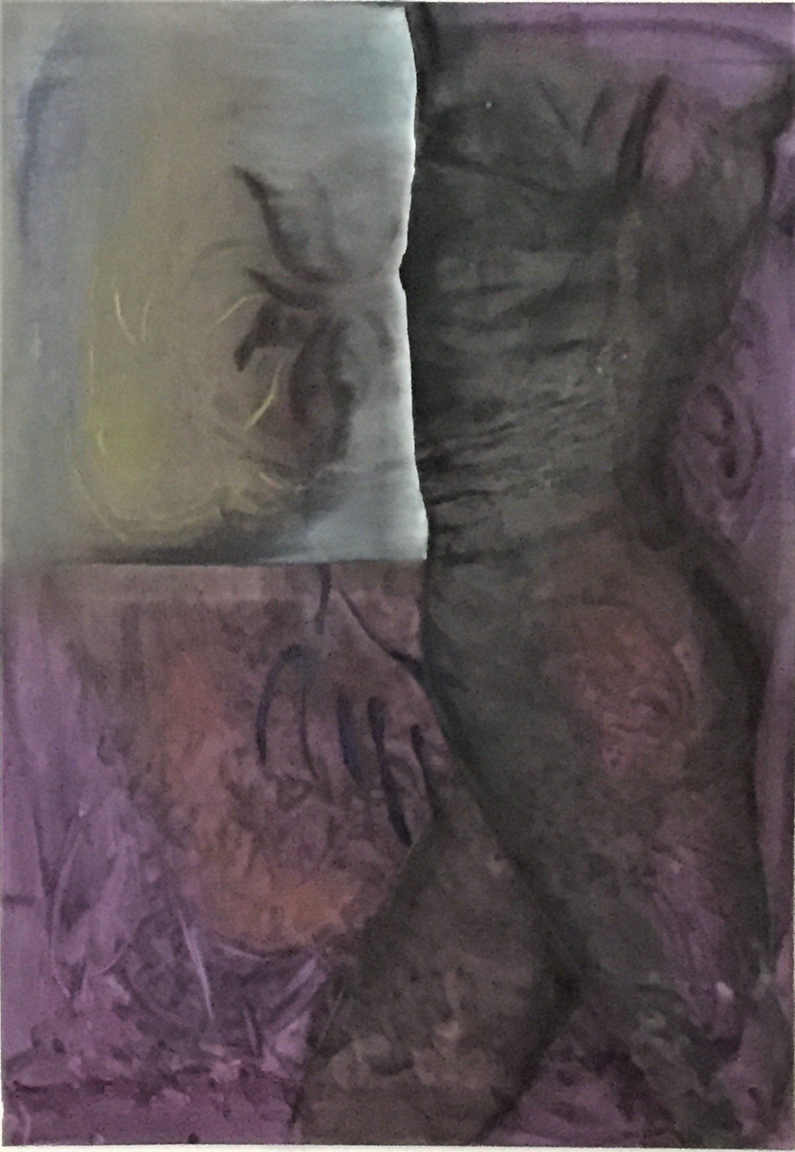 ButtonDispersion, oil, acrylic, spray, pastel crayon on oriented strand boards