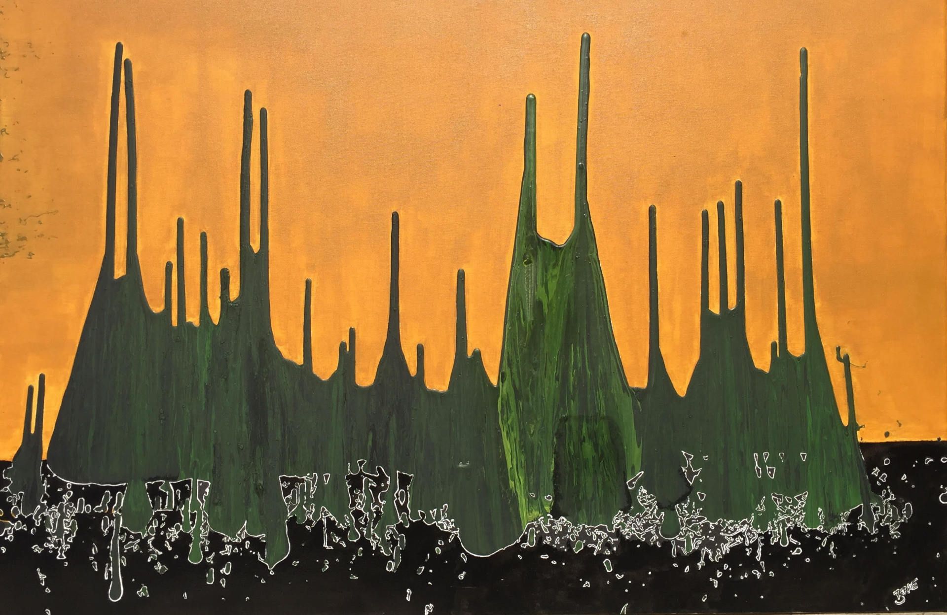 Buttonoil, acrylic on oriented strand board