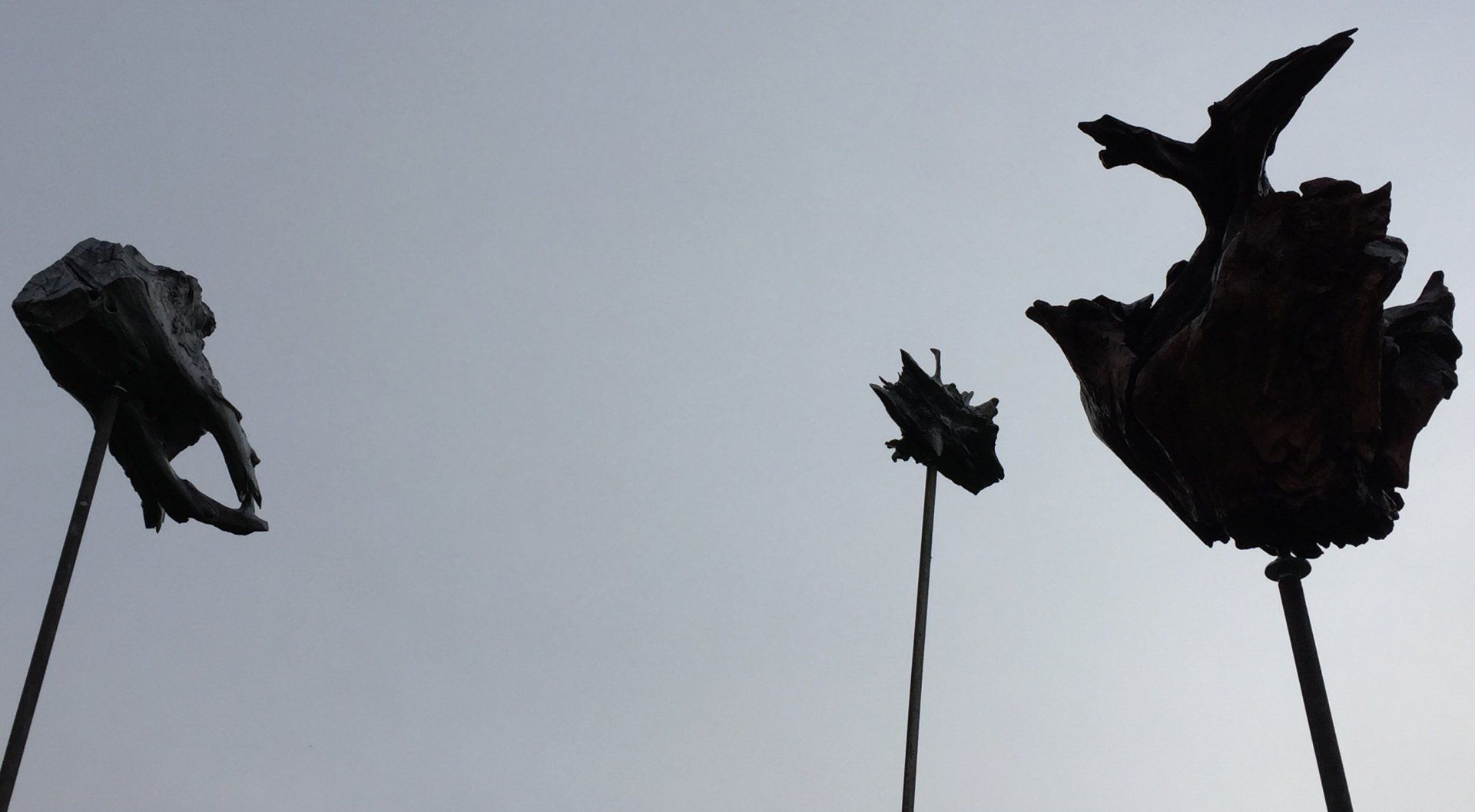wood, epoxy resin, chrome spray, iron pipes, threaded rods